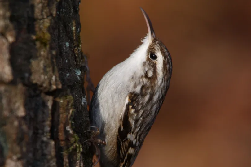 Mit seinem feinen gebogenen Schnabel pickt er am liebsten Insekten unter furchiger Rinder hervor. Sein Nest baut er auch gerne in Leerräumen hinter abgeplatzter Rinde.